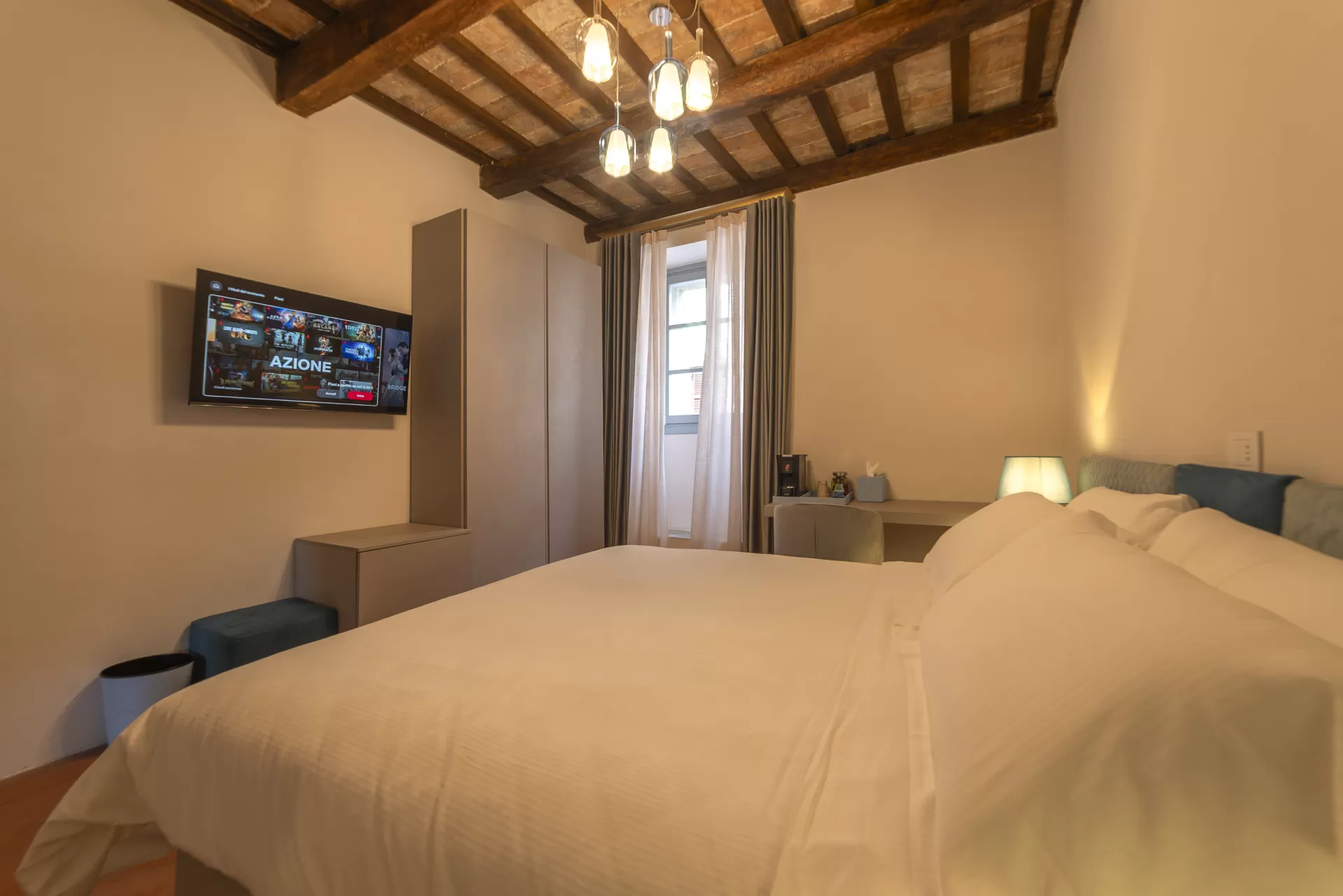 Sottili equilibri e design silenzioso. Materie naturali e un affaccio discreto sul centro storico creano un rifugio essenziale, pensato per chi vuole lasciarsi alle spalle il rumore del mondo.